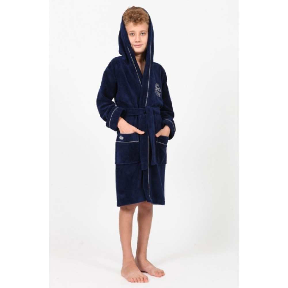 Детский халат для мальчика Nusa хлопок/бамбук, 15-16 лет, на рост 158-164, синий