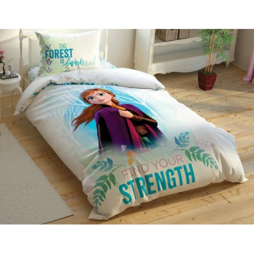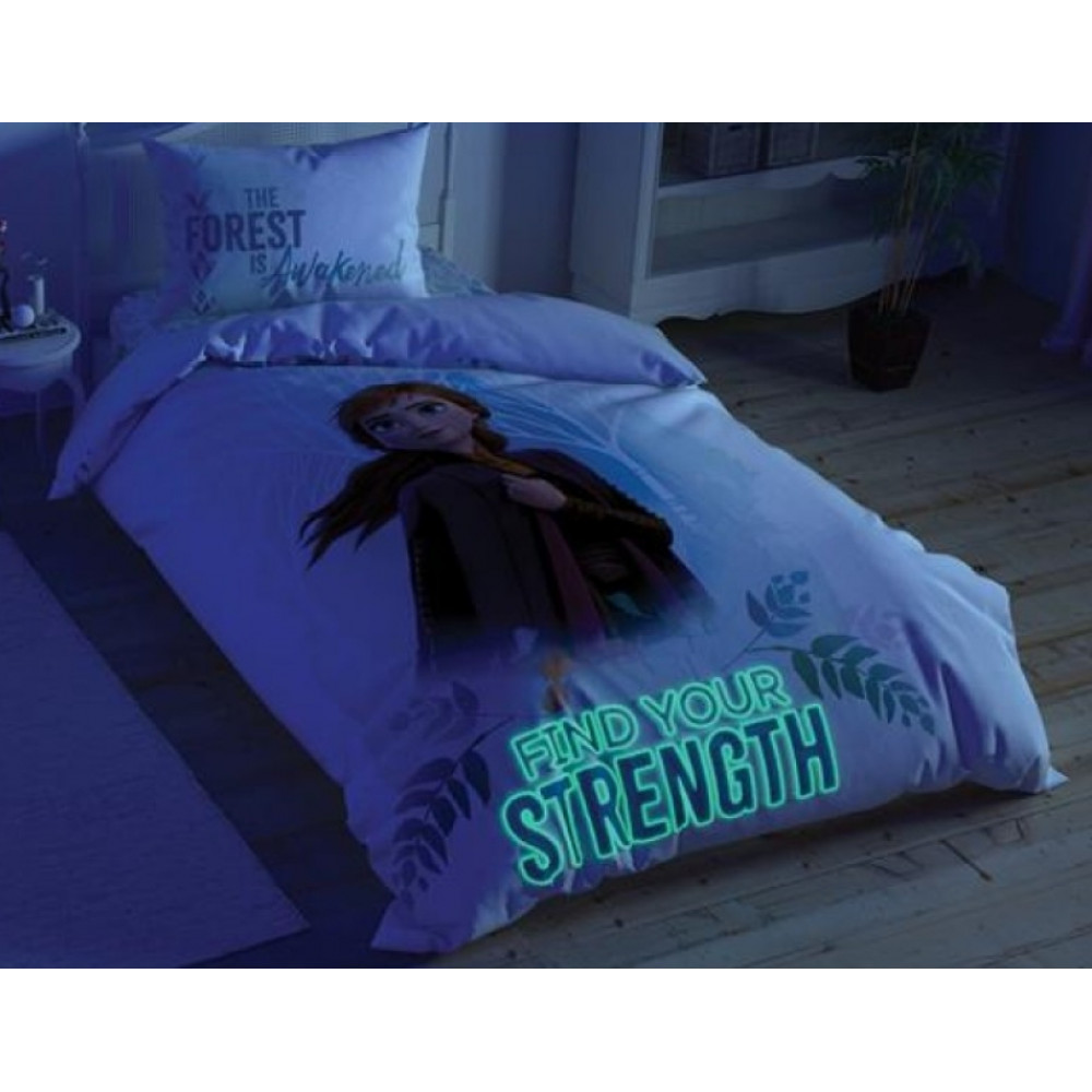 Подростковое постельное белье Tac Disney Frozen-2 Double Sided, двустороннее, ФЛЮОРИСЦЕНТНЫЙ РИСУНОК ранфорс полуторное