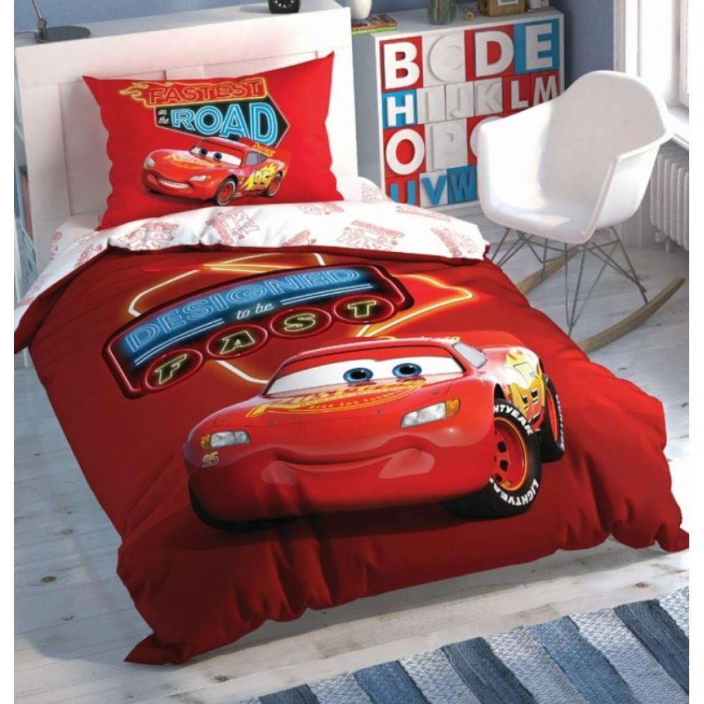 Подростковое постельное белье Tac Disney Cars Shine Road Glow ранфорс полуторное