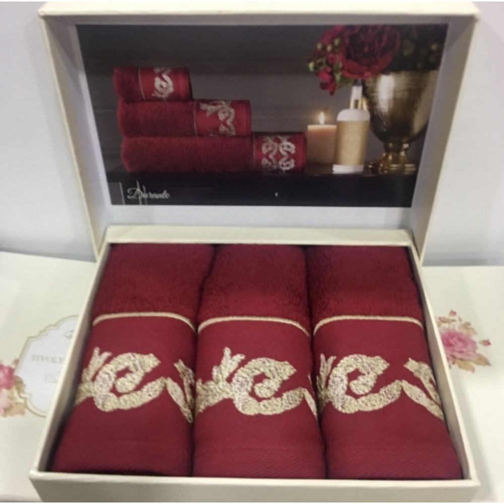 Кухонные полотенца Tivolyo Home Durante bordo , 3 предмета, махра (100 хлопок) Цвета: бордовый