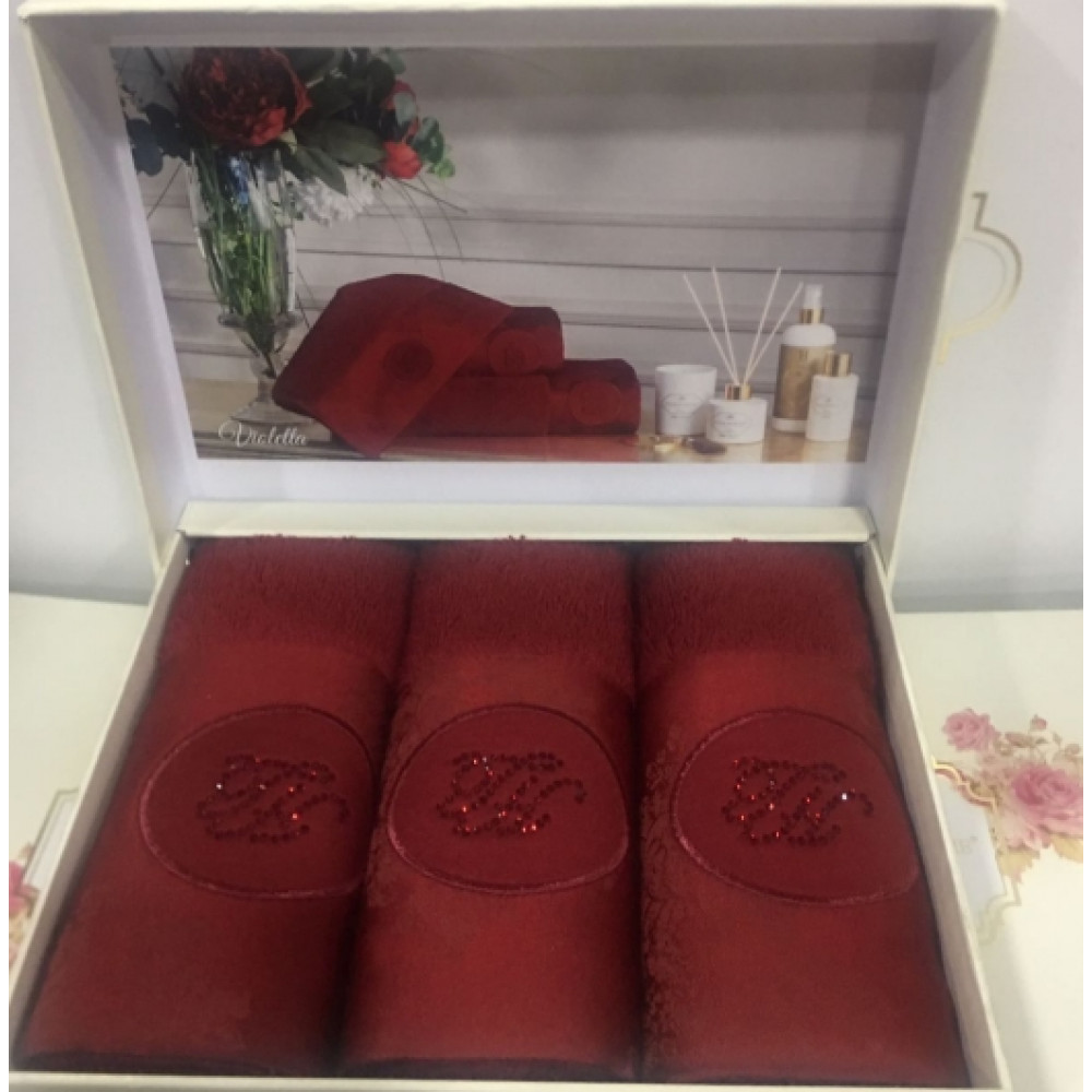 Кухонные полотенца Tivolyo Home Violetta bordo , 3 предмета, махра (100 хлопок) Цвета: белый