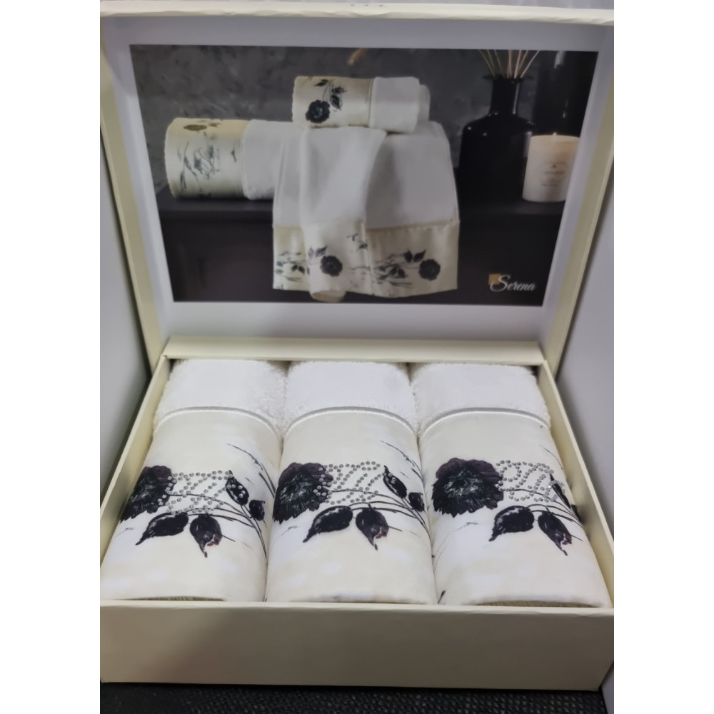 Набор полотенец Tivolyo состоит из трех чудесных салфеток размера 30x50 см. Салфетки имеют красивый бортик с печатным рисунком и украшены стразами с фирменной символикой TH.