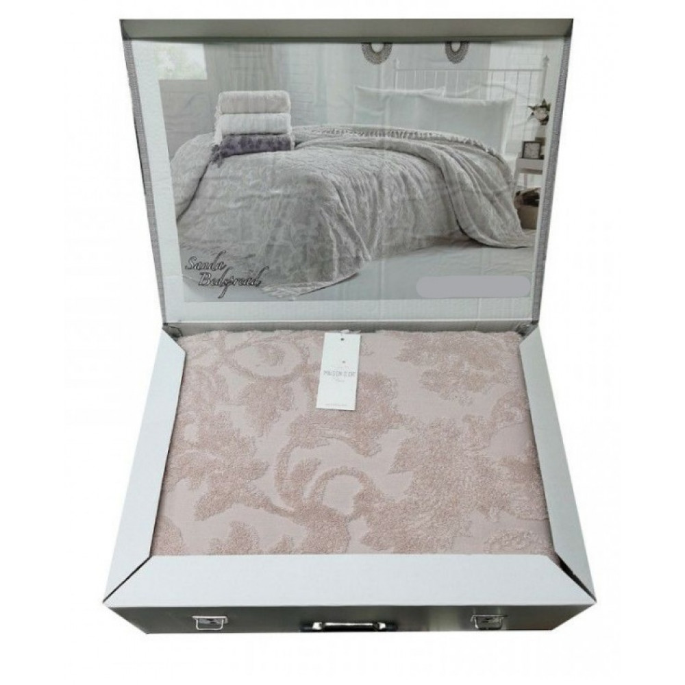 Махровое жаккардовое покрывало SANDA в нежном постельном дизайне, мягкое, очень нежное, можно использовать в качестве пледа. Изготавливается из 100% хлопка высочайшего качества. Красивое покрывало имеет презентабельный внешний вид!!!! Покрывало SANDA не только украсит ваш дом, но и может стать прекрасным подарком!!!!