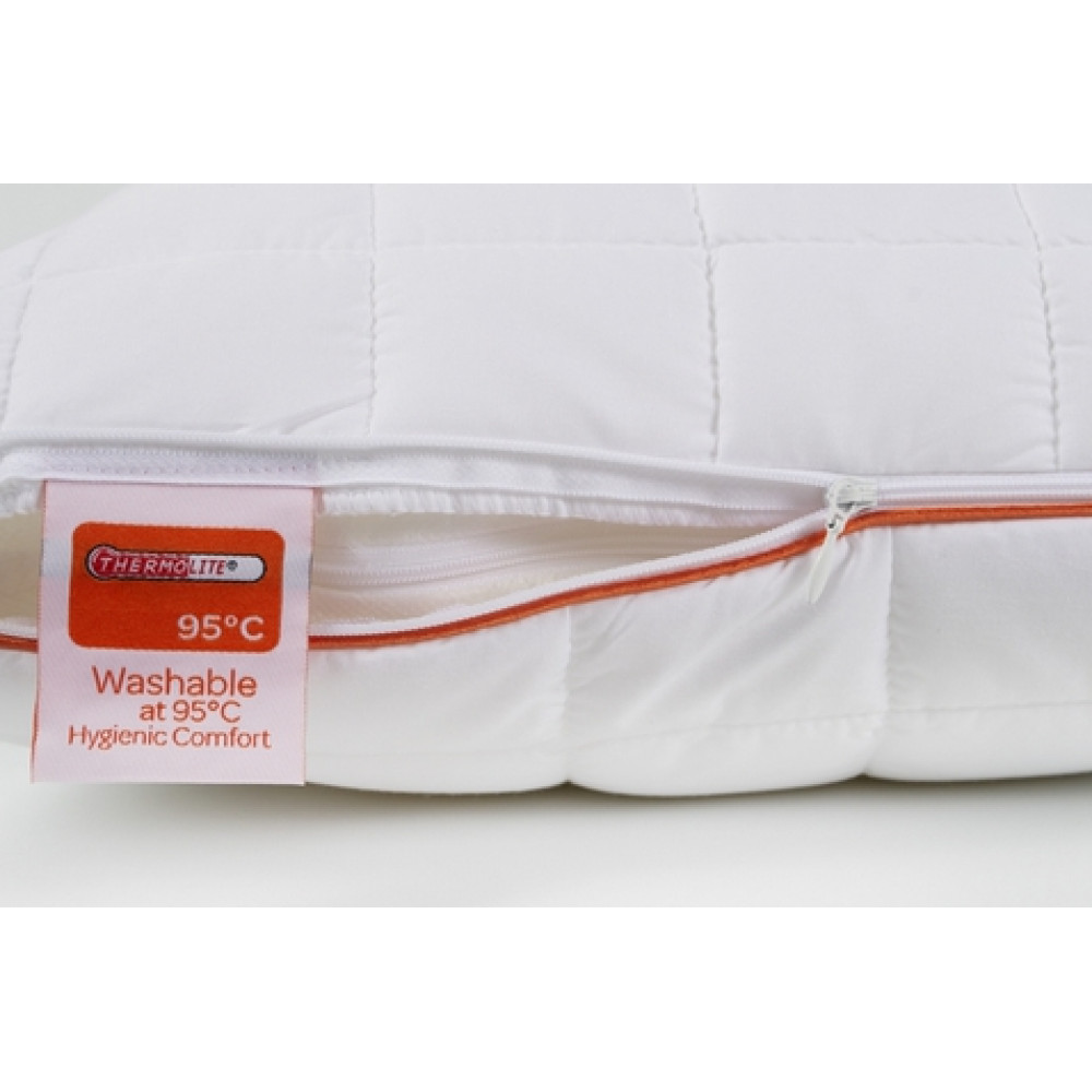 Подушка Tempura 95°C входит в инновационную коллекцию изделий, в наполнении которых используется лицензированное волокно Thermolite. Главной его особенностью является антибактериальные свойства и стойкость к стирке при высокой температуре до 95°C (важно отметить, что это фактически считается температурой кипячения). В состав ткани чехла входит натуральный хлопок и микрофибра. Сам чехол съемный, изнутри он дополнительно простеган полым микроволокном по кассетному принципу. Внутренний чехол снабжен молнией, благодаря чему можно самостоятельно регулироваться высоту и плотность подушки, вытянув нужное количество наполнителя, исходя из личных предпочтений и особенностей. Подушка Tempura 95°C – это залог комфорта, уюта и гигиены. Она прекрасно подойдет и детям, и тем, кто является обладателем чувствительной кожи.