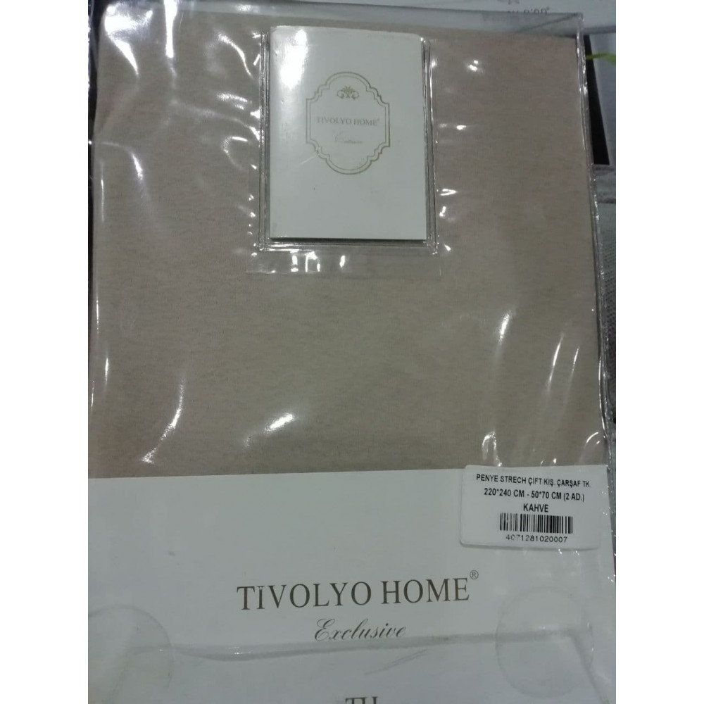 Простынь Tivolyo Home kahve трикотажная на резинке 180x200 наволочки 2-50x70