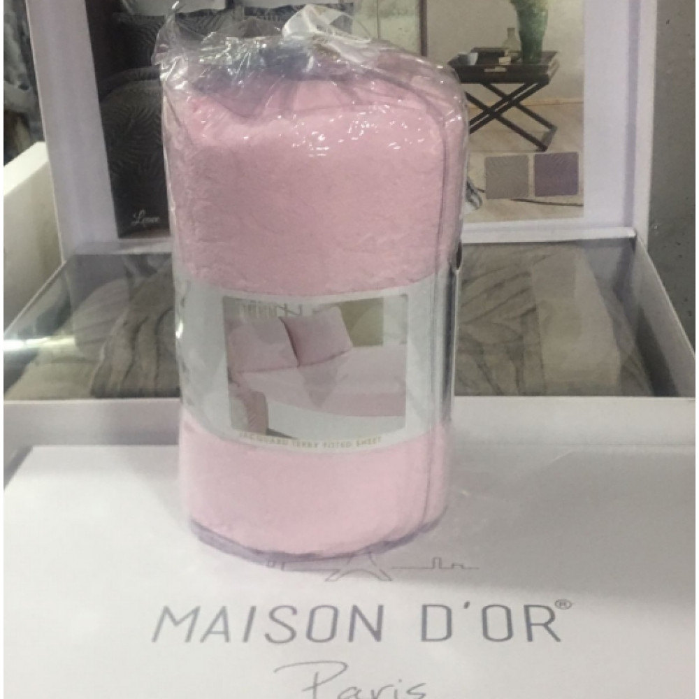 Простынь Maison D'or pink махровая на резинке 180x200 + наволочки 2-50x70