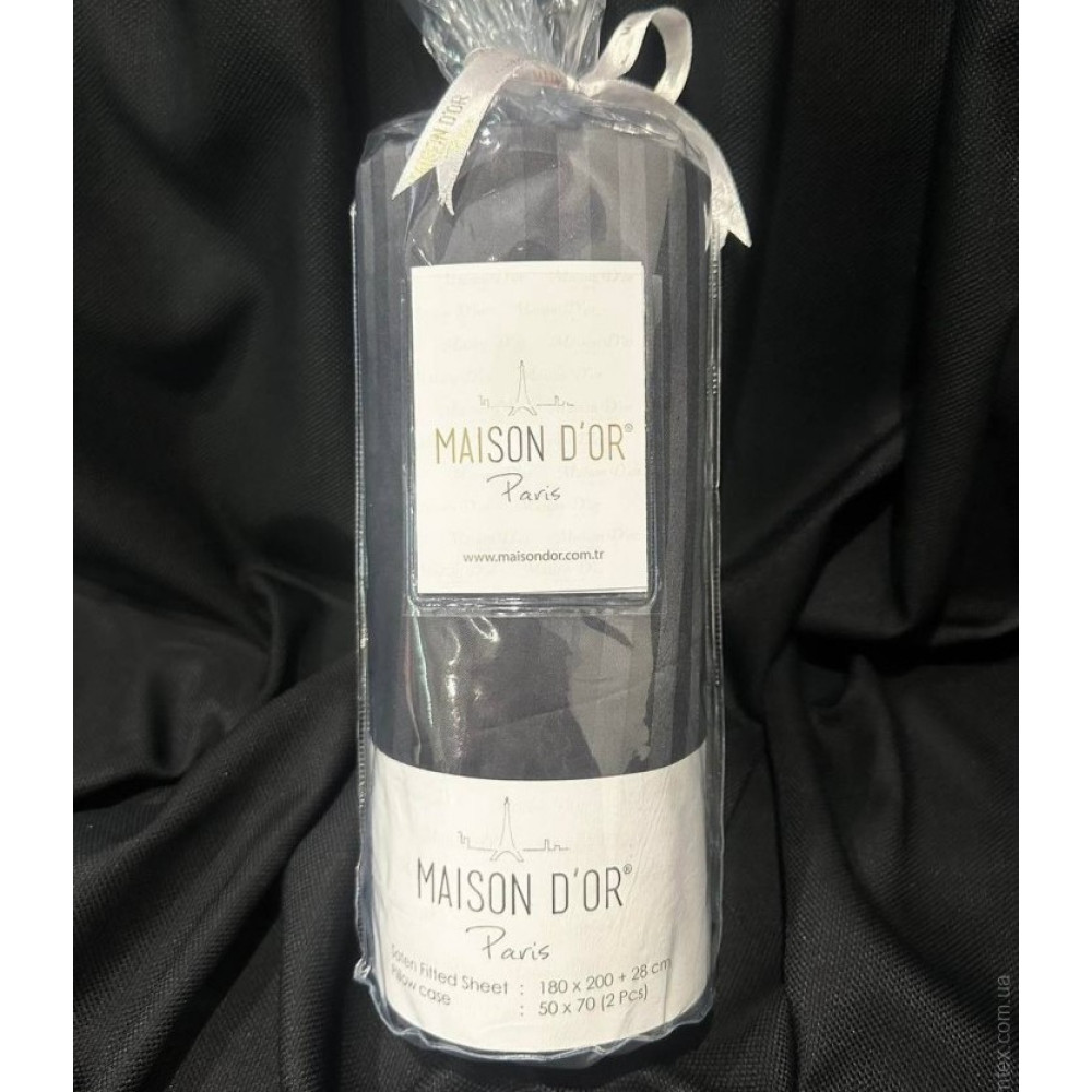 Простынь сатиновая Maison D'or antracit на резинке 180x200 + наволочки 2-50x70