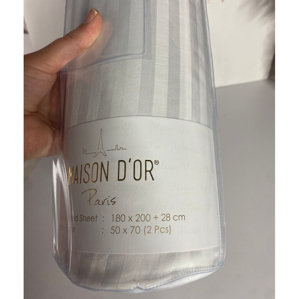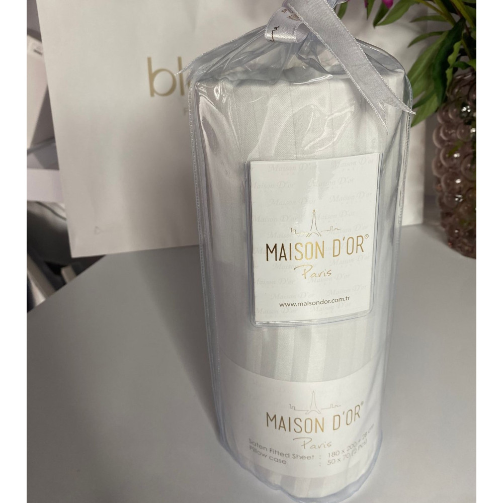 Простынь сатиновая Maison D'or white на резинке 180x200 + наволочки 2-50x70