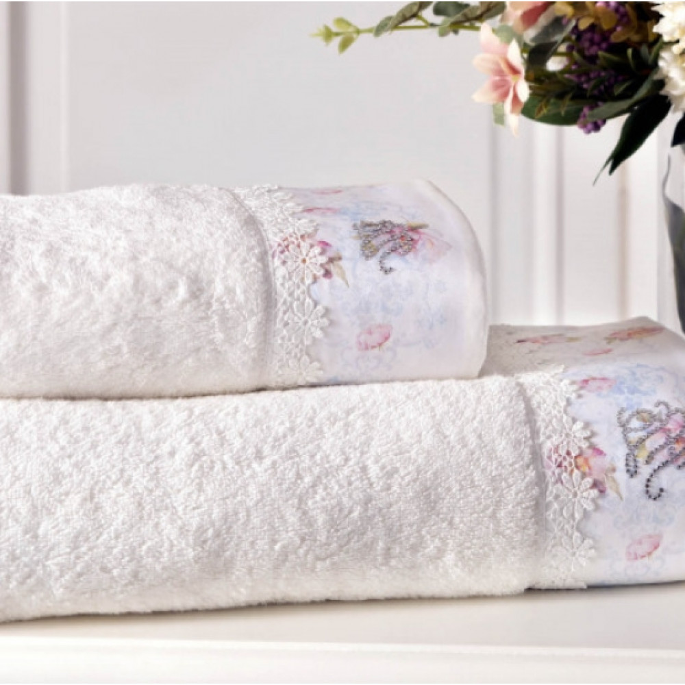 Материал: махра (100%хлопок), Плотность 550г/м2, Особенности отделки - Гипюр и кружево, Печатный рисунок