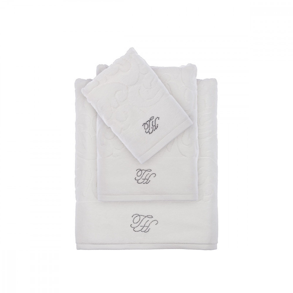 Описание: Оригинальный набор полотенец серии Baroc от Tivolyo Home. Набор состоит из 3 мягких жаккардовых полотенец: салфетка 30x50 см, лицевое 50x90 см и банное 90x150 см. Каждое полотенце имеет симпатичный растительный узор и имеют фирменную надпись "TH" из страз.