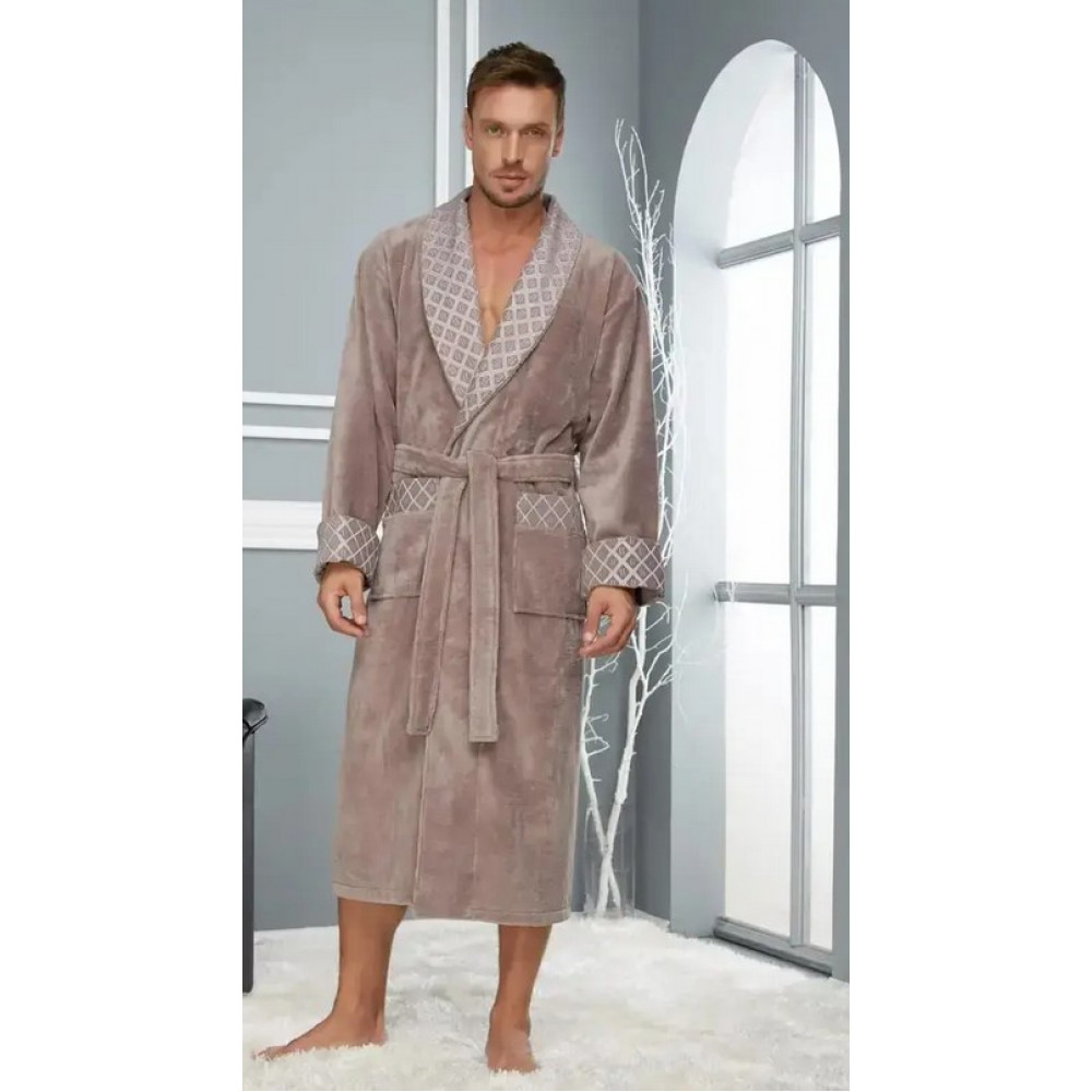 Халат мужской nusa хлопок/бамбук модель 15155 бежевый, xxxl