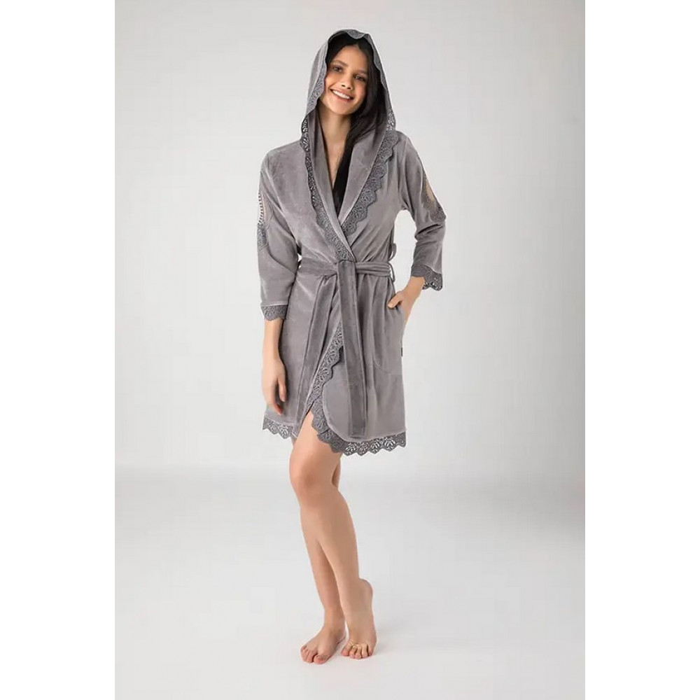 Халат женский nusa хлопок/бамбук модель 20187 серый, l/xl