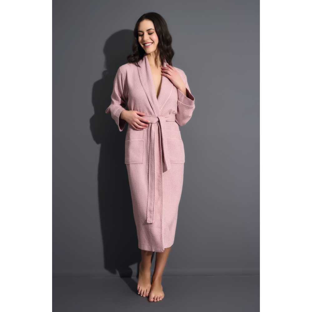 Халат женский вафельный nusa хлопок/бамбук модель 4270 pudra, xxxl