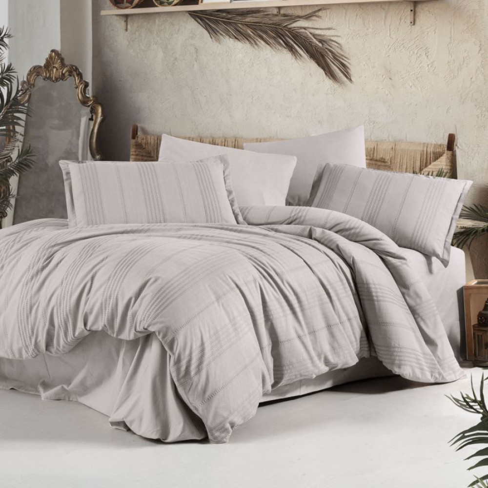 Комплект Clasy V6 Acik Gri – это воплощение лаконичного европейского стиля .Светло-серый оттенок в сочетании с уникальной технологией Ранфорс Жаккард создает эффект сдержанной роскоши. Это идеальный выбор для тех, кто ищет практичное и стильное белье, которое благодаря рельефному узору выглядит значительно интереснее обычных гладких комплектов. Ранфорс Жаккард: Уникальность в каждой нити Главное преимущество модели V6 – это эксклюзивная ткань, которую редко встретишь в масс-маркете. Ранфорс Жаккард от Clasy сочетает выносливость хлопка с художественной сложностью плетения. Фактурный объем: Узор соткан на полотне, что делает ткань приятной на ощупь и визуально богатой. Высокая плотность и мягкость Ткань выдерживает сотни стирок, сохраняя свою форму. Больше о свойствах базового материала читайте здесь: Обзор ткани постельного белья – Ранфорс . 100% Турецкий хлопок: Материал «дышит», обеспечивая комфортный микроклимат во время сна. Светло-серый цвет (Acik Gri) в современном интерьере считается универсальной базой. Он успокаивает и придает спальне визуальную чистоту.