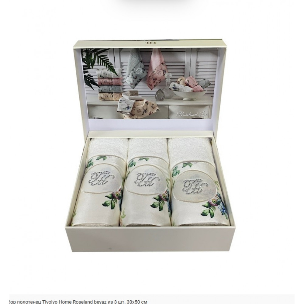 Кухонные полотенца Tivolyo Home Roseland k.beyaz 3-30x50