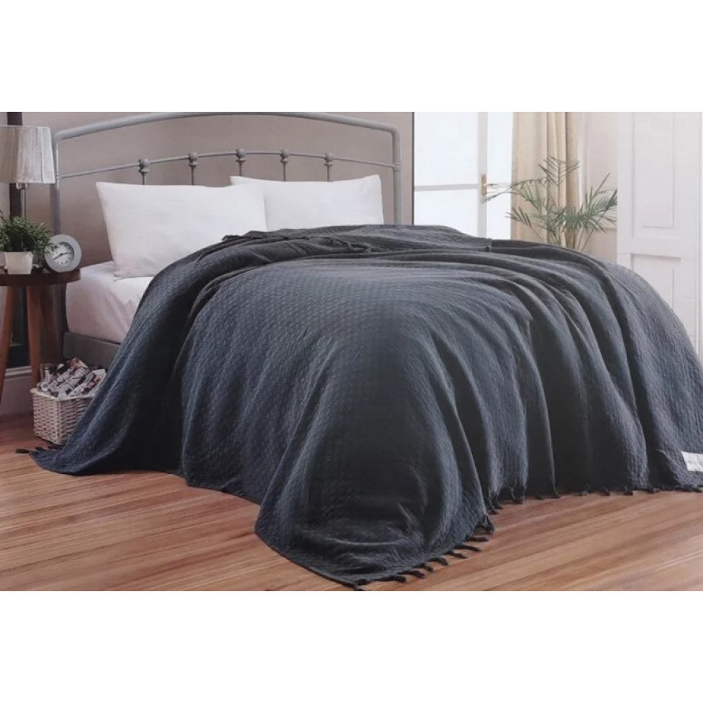 Красивое покрывало из вафельной хлопковой ткани премиум класса придаст изысканность Вашему интерьеру спальни или гостиной. Покрывало хорошо согревает – при необходимости им можно укрыться в прохладное время. Довольно легко стирается, сохраняет цвет и форму, позволяя наслаждаться им долгое время