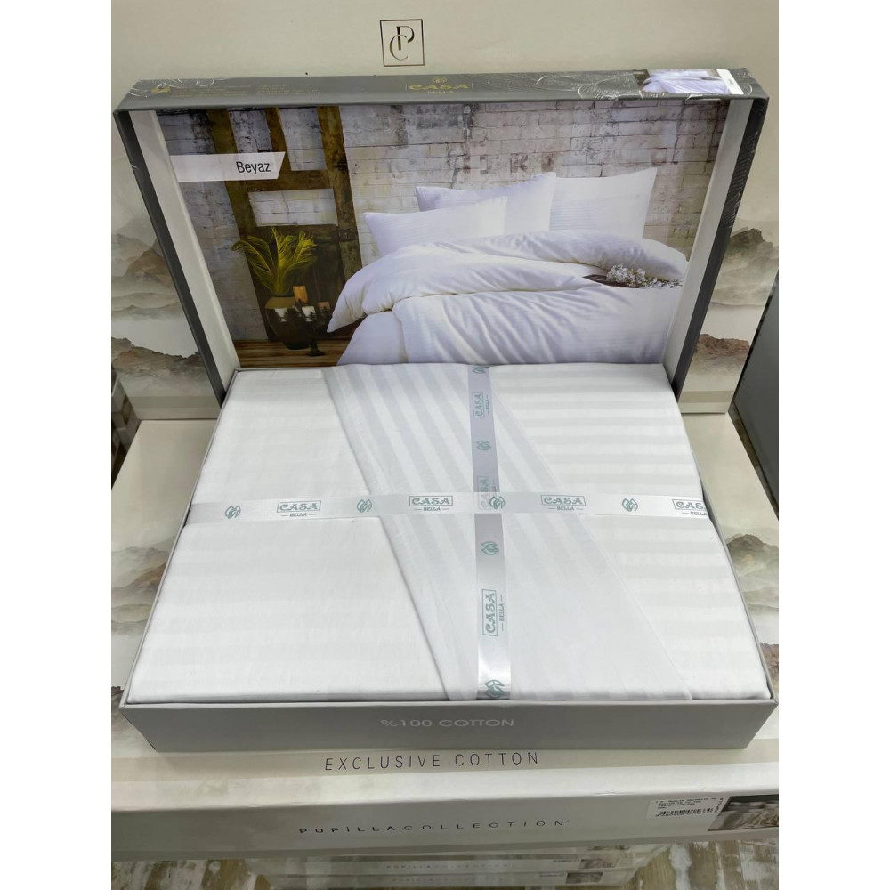 • Постельное белье Casa Bella beyaz страйп сатин евро