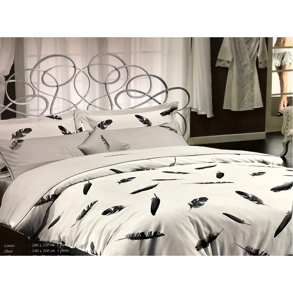 • Постельное белье Maison D'or Plumes grey люкссатин с вышивкой семейное
