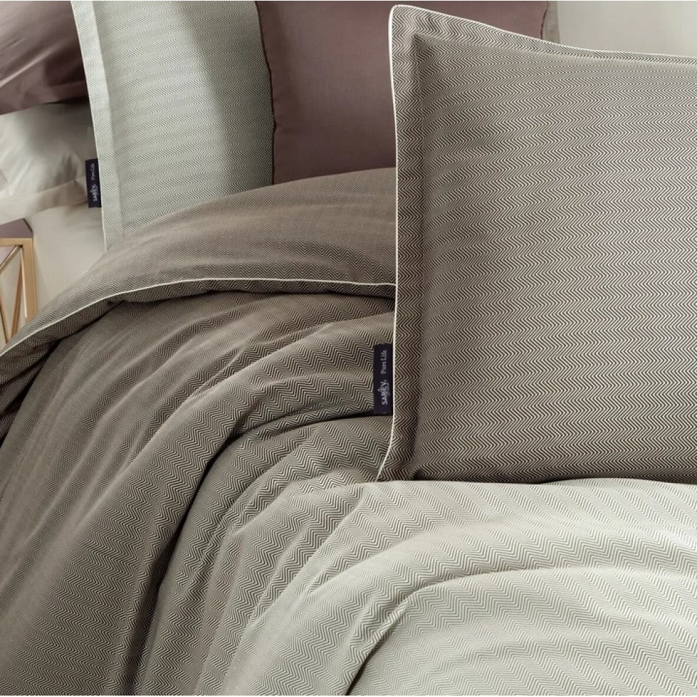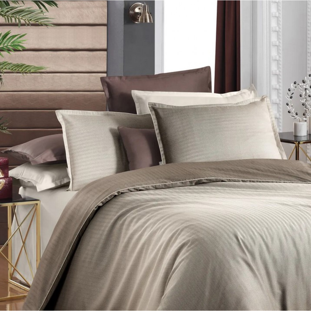Комплект постельного белья от турецкого бренда Sarev. Он сшит из лёгкого, необычайно гладкого и шелковистого сатина высокой плотности плетения сотканного из 100% высококачественного турецкого хлопка. Ткань украшает принт, нанесённый с помощью реактивной цифровой печати.