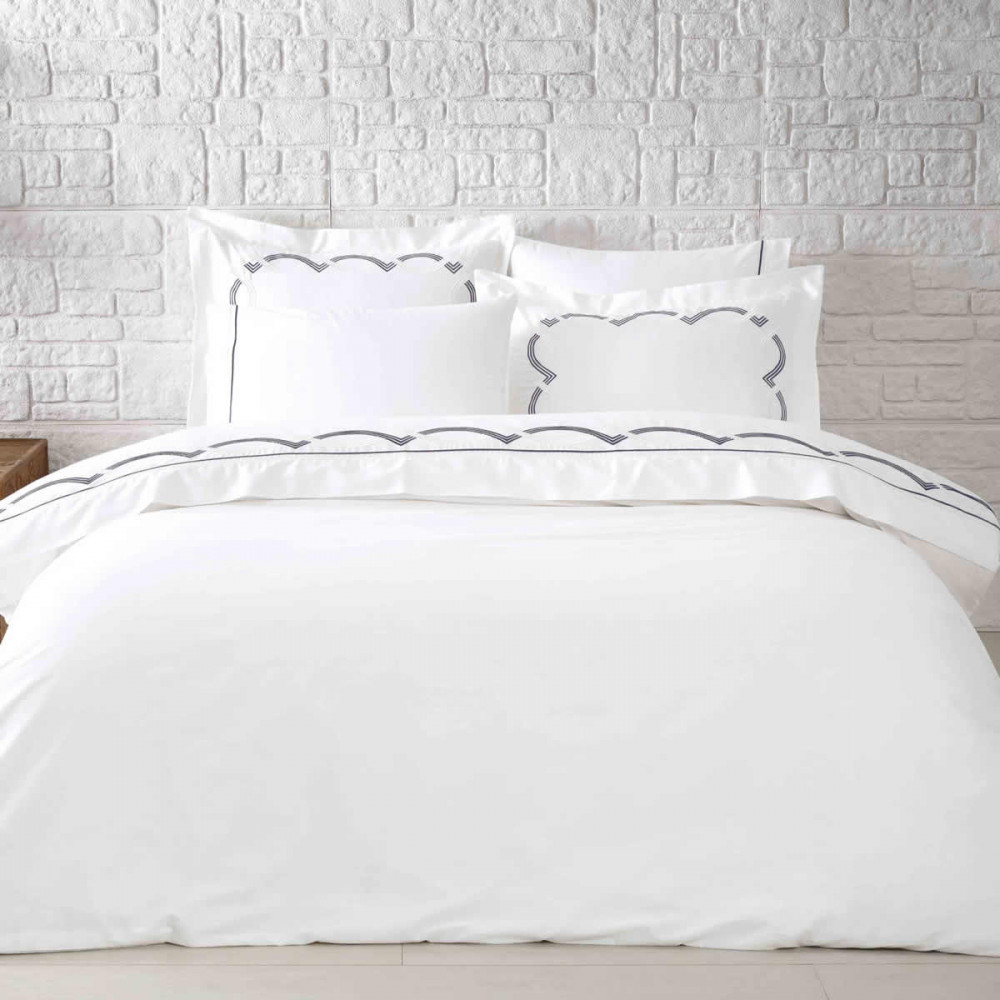 Постельное белье Tivolyo Home Cross k.beyaz/lacivert премиум сатин с вышивкой евро