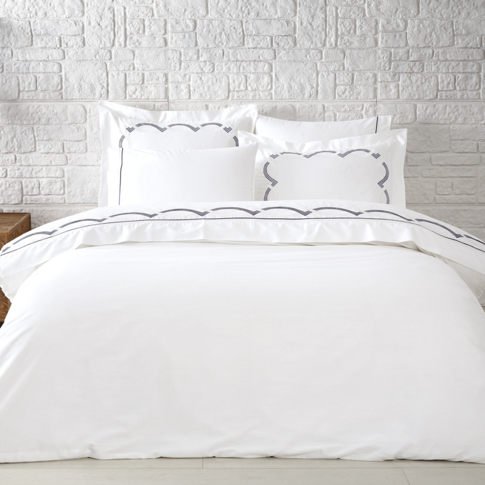 Постельное белье Tivolyo Home Cross k.beyaz-gri премиум сатин с вышивкой евро