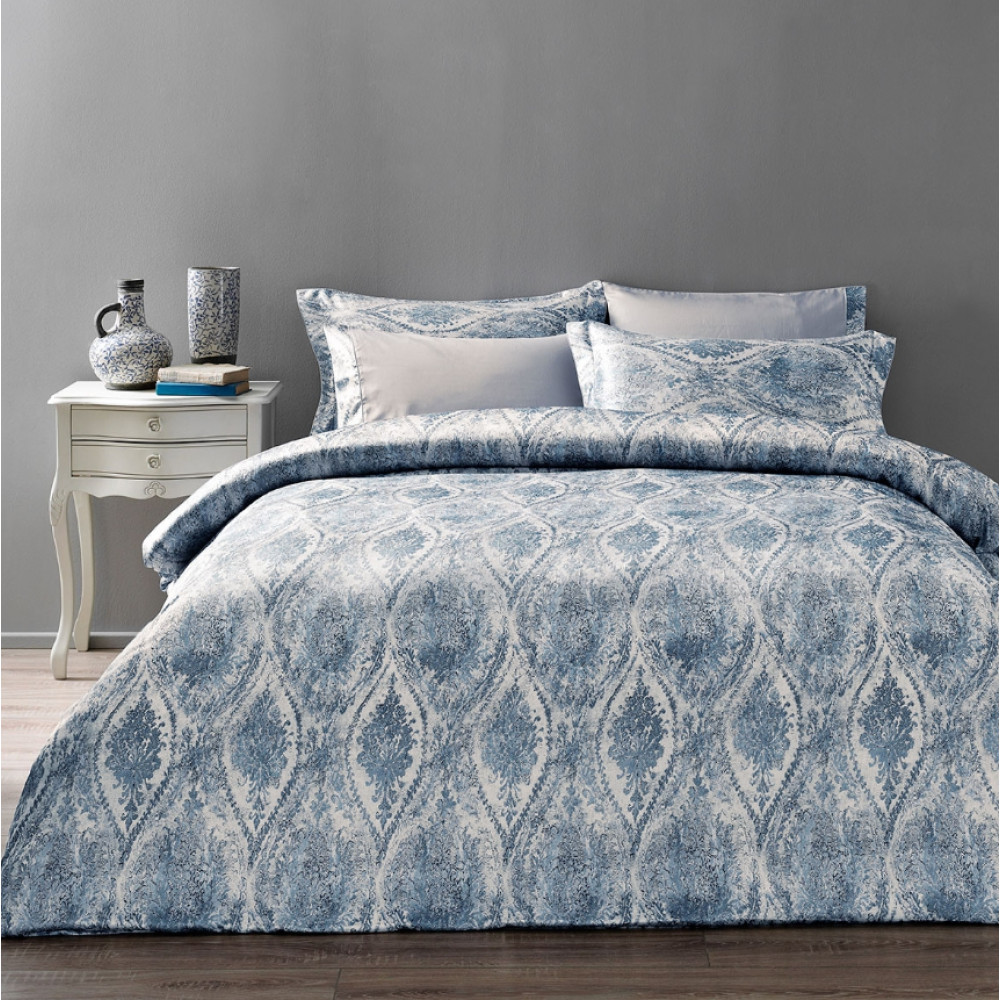 Постельное белье Tivolyo Home делюкс сатин жатый шёлк евро Dante Цвет: голубой