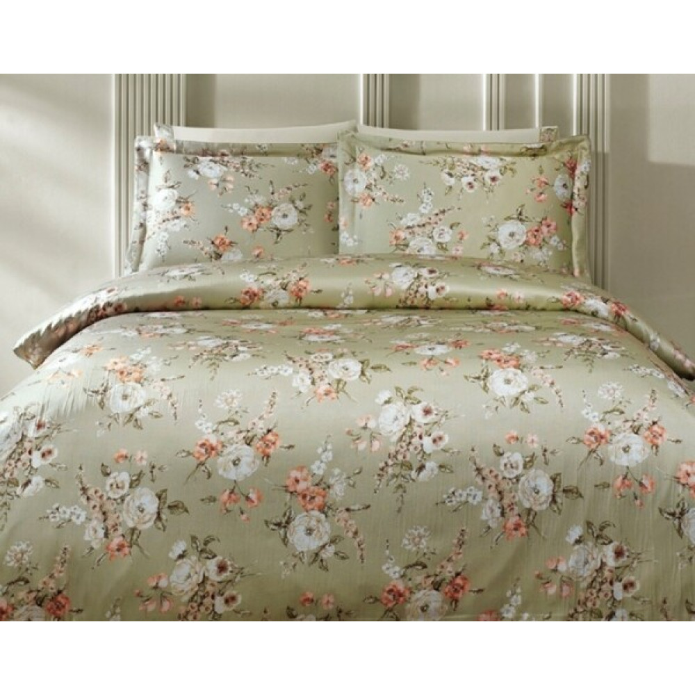 Постельное белье Tivolyo Home Emilia yesil делюкс сатин жатый шёлк евро
