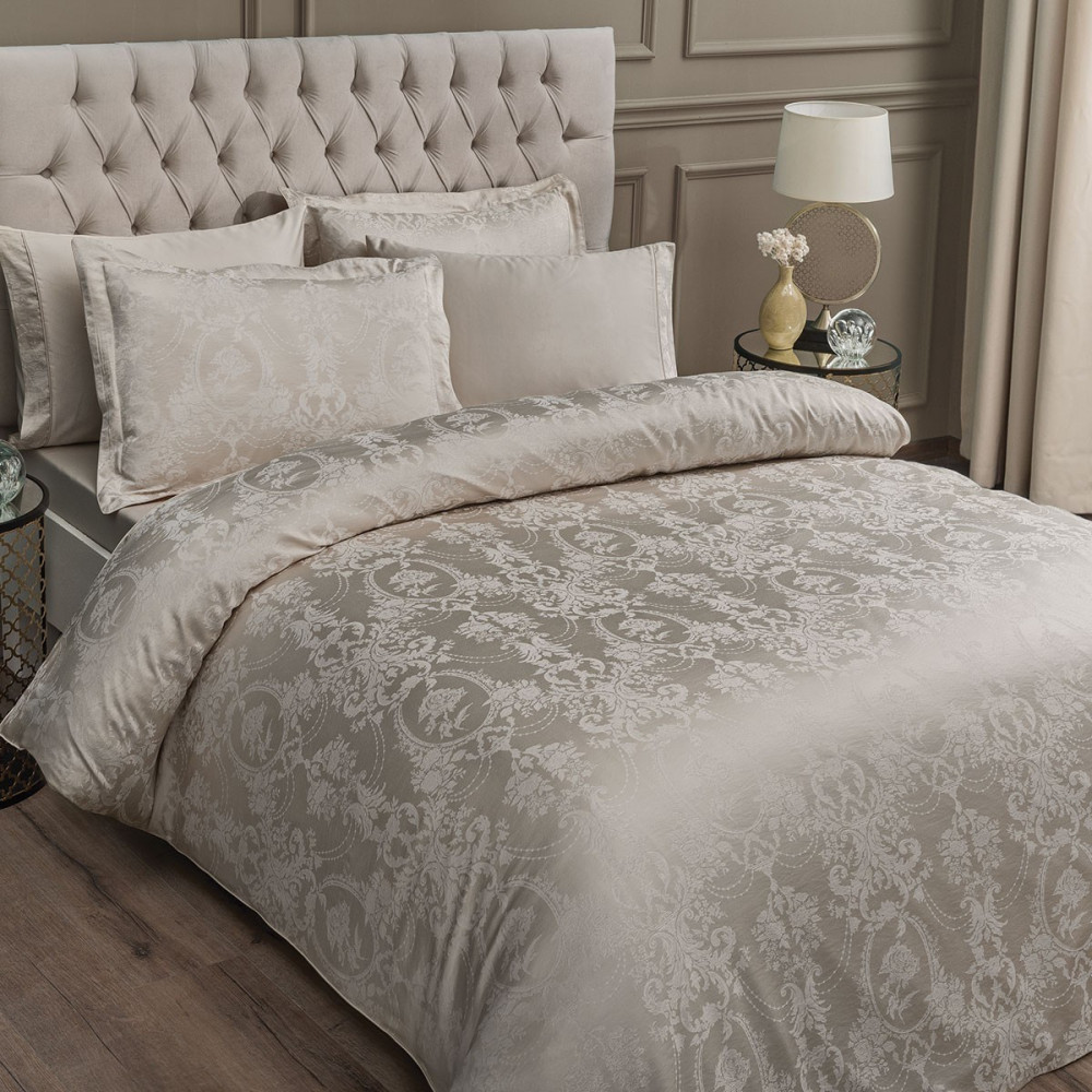Элитное жаккардовое постельное белье Tivolyo Grant турецкой марки Tivolyo Home очаровывает своей нежностью, блеском и изысканностью жаккардовой отделки. Праздничное, подходящее для торжественных случаев, сшитое по эксклюзивным дизайнам - это постельное белье из самого сердца Турции подчеркнет Ваш тонкий вкус и идеально подходит в качестве подарка для себя или близких! Пододеяльник в комплекте застегивается на пуговицах. Простынь - классическая без резинки. Наволочки имеют клапан для запахивания. Tivolyo Home является премиальным турецким брендом широко известным на европейском рынке. Вся продукция выполнена под тщательным контролем специаПростирадлоов, только из высококачественных материалов при учете всех современных тенденций в мире моды. Коллекция Jacquard весьма любима нашими покупателями. Постельное белье из жаккарда любят за его роскошный и благородный вид.