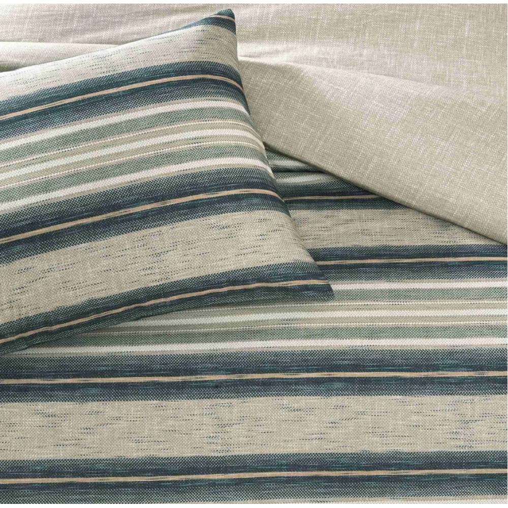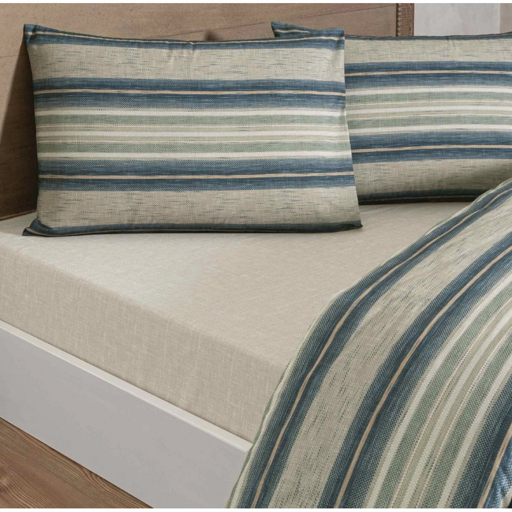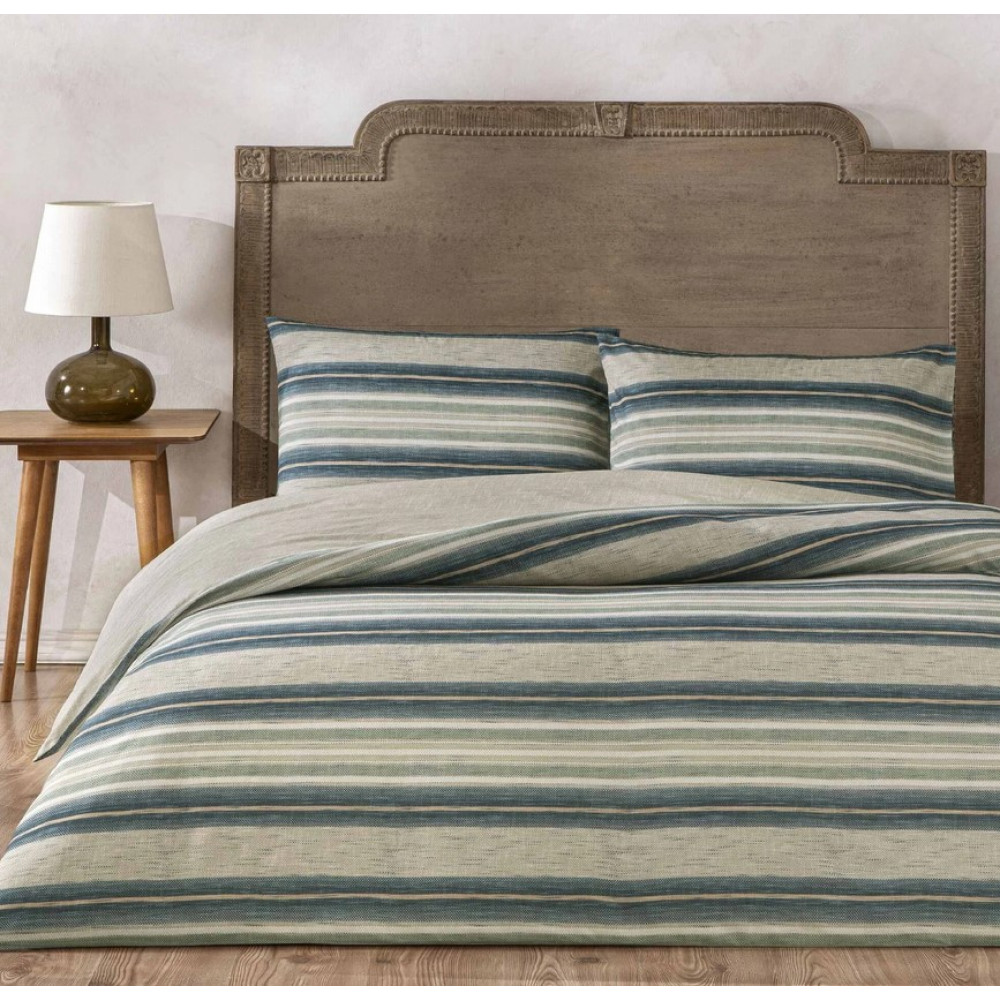 Создайте в спальне атмосферу уютного загородного дома с комплектом постельного белья TAC Nores Mavi . Стильный и вневременный принт в полоску, выполненный в спокойной природной палитре синего, зеленого и бежевого цветов, придаст интерьеру гармонию. Комплект изготовлен из качественного и мягкого ранфорса (100% хлопок).