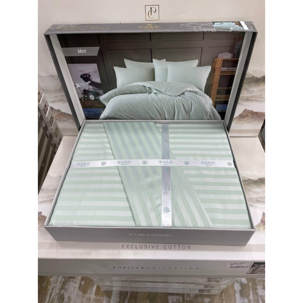 Постельное белье Casa Bella mint страйп сатин евро