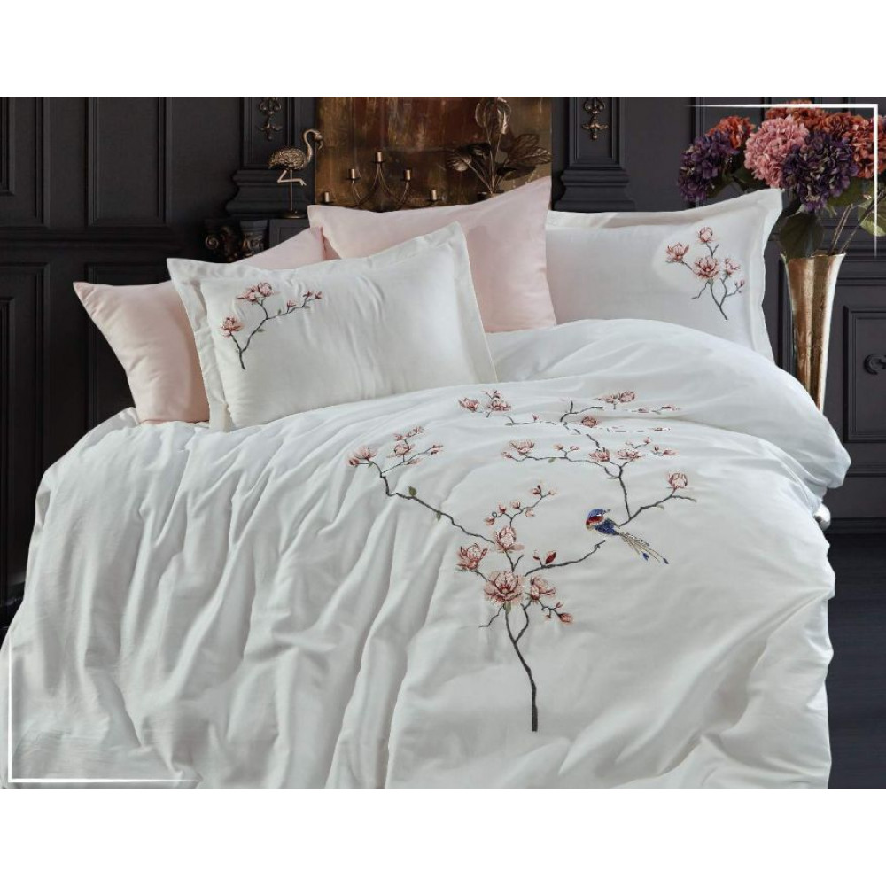 Постельное белье Dantela Huma krem премиум сатин с вышивкой евро