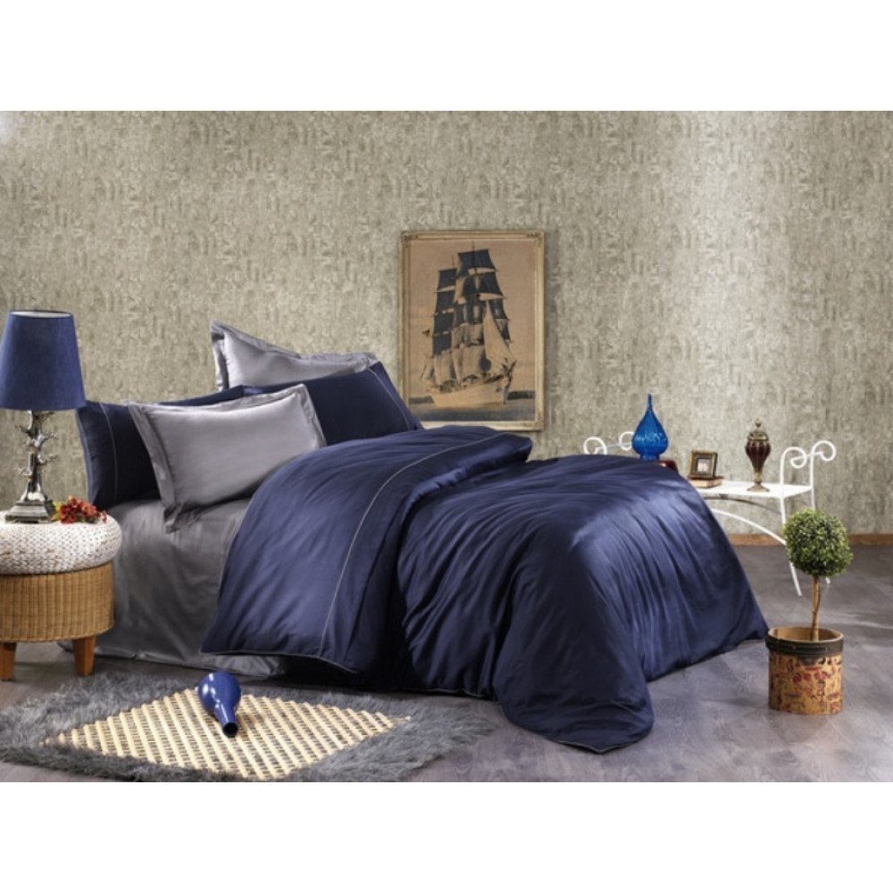 Постельное белье Grazie Home евро, сатин делюкс (100%хлопок) ALIX Цвета: тёмно-синий/антрацит