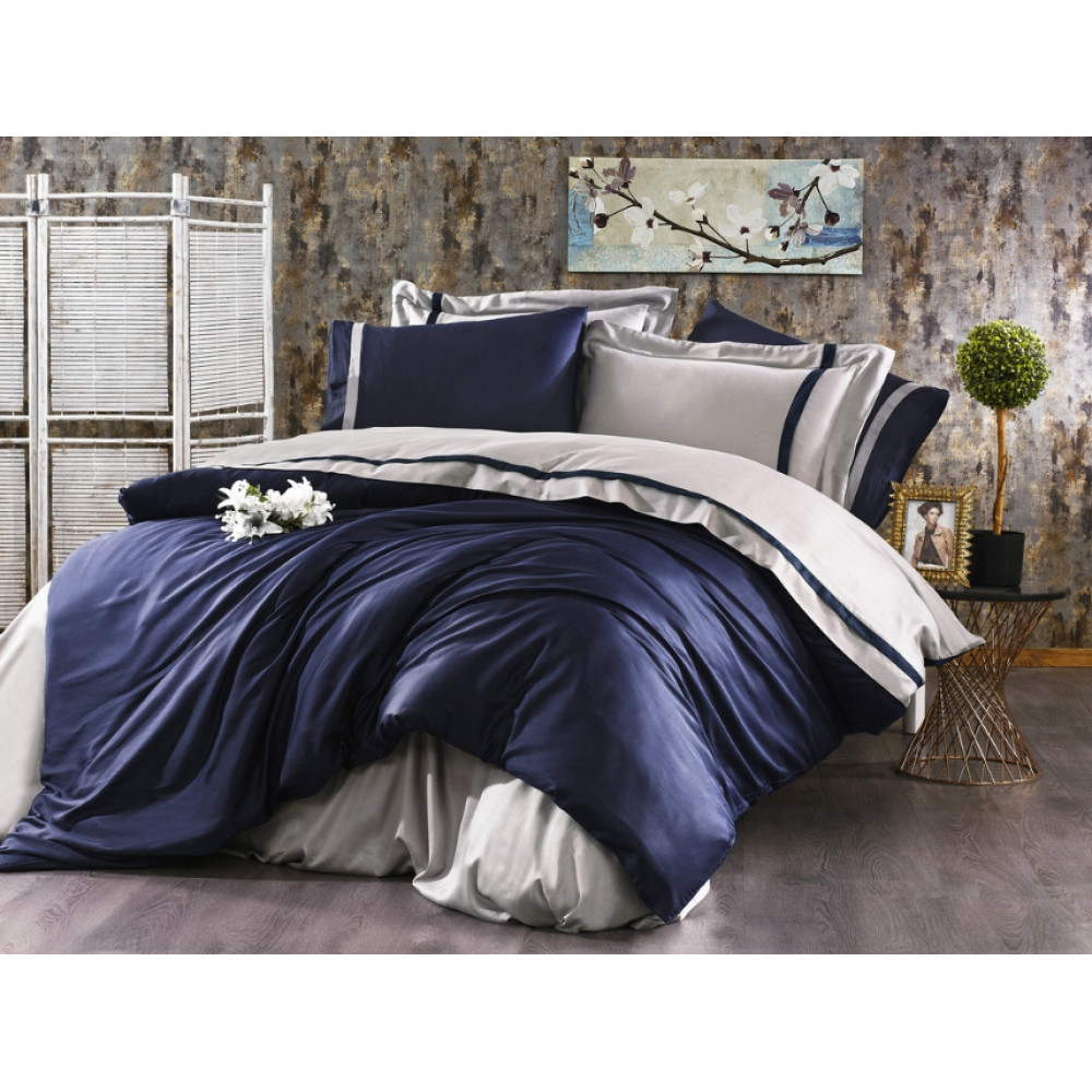 Постельное белье Grazie Home Elite lacivert/gri сатин делюкс евро