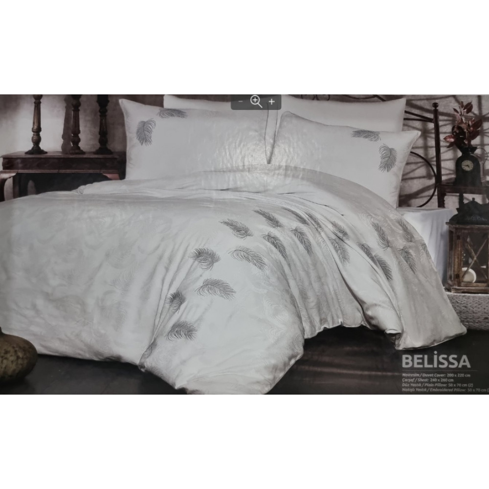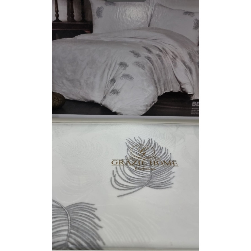 Постельное белье Grazie Home, сатин делюкс (100%хлопок), евро, Belissa gri, Цвета: серый, белый