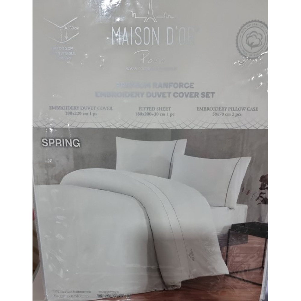 Постельное белье Maison Dor изготовлено из ранфорсса, при производстве которого используется высококачественный хлопок, выращенный на территории Турции. Экологическая чистота и 100% натуральность изделия. Наволочки и пододеяльник украшены изящным кантом. Не красится, не выцветает и не даёт усадку после стирки.
