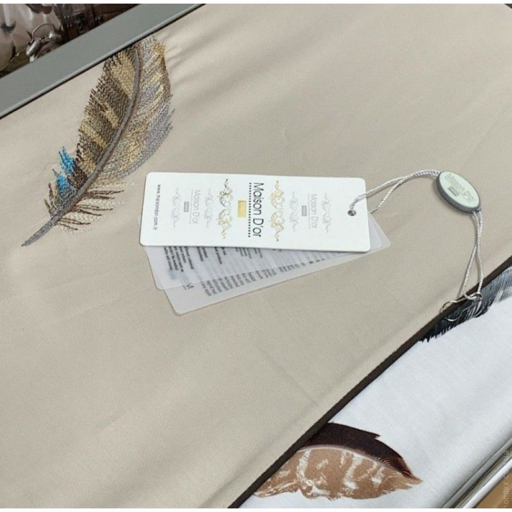 Постельное белье Maison D'or Pulume Volante beige люкссатин с вышивкой евро