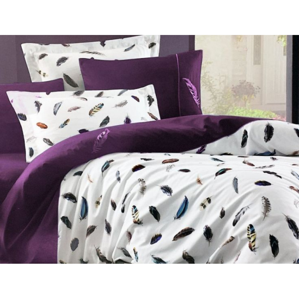 Постельное белье Maison D'or Pulume Volante dark lilac сатин с вышивкой евро