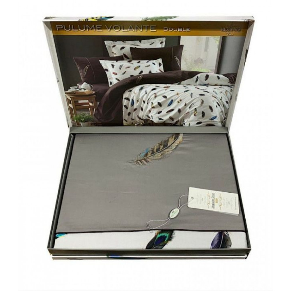 Постельное белье от ТМ Maison D'or – постельное белье премиум-класса! Высокое качество турецких тканей и французский дизайн воплощены исключительно в натуральных материалах. Подобраны самые оригинальные и красивые расцветки, чтобы удовлетворить вкусы даже самых взыскательных клиентов. Модель постельного белья Pulume Volante украшена невесомыми перышками, изготовлена из двух цветов ткани, очень изысканна и стильна! Ткань, используемая при пошиве – сатин! Она крепкая и износостойкая, прослужит Вам не один год! Сатин – это хлопчатобумажная ткань, изготавливаемая из скрученных нитей. Чем тоньше нить, тем ближе друг к другу прилегают нити плетения и больше плотность. Поэтому плотность сатина составляет 130 – 135 грамм на квадратный метр. Таким образом сатин приобретает свойственный себе приятный и матовый блеск. Постельное белье укомплектовано в презентабельную картонную коробку.