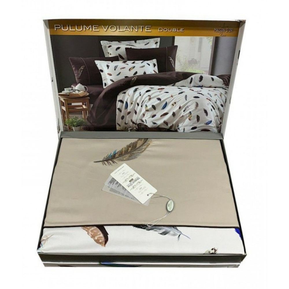 Постельное белье Maison D'or сатин делюкс Plum Volante Beige семейный Цвета: бежевый