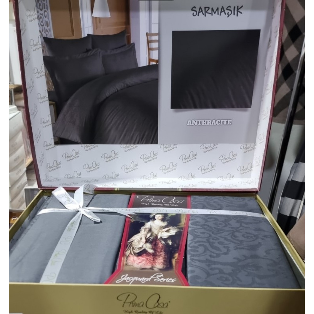 Постельное белье Prima casa Sarmasik anthracite жаккард семейное