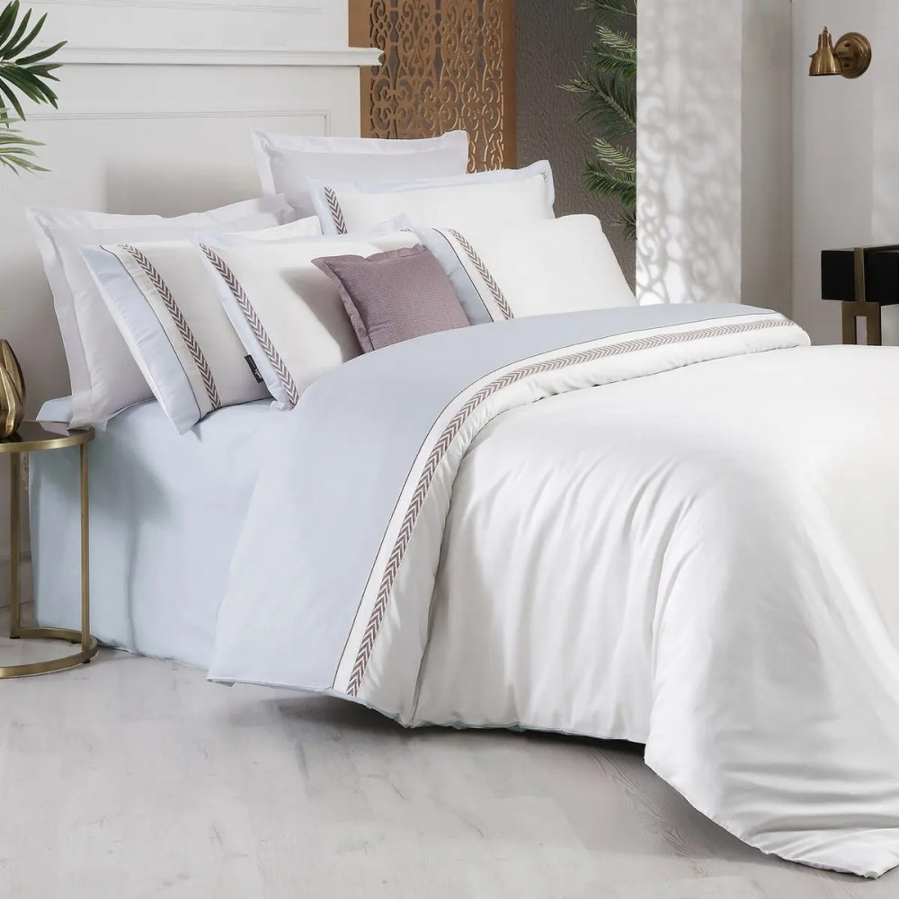 Постельное белье Sarev Graz mavi сатин делюкс 300ТС с вышивкой евро
