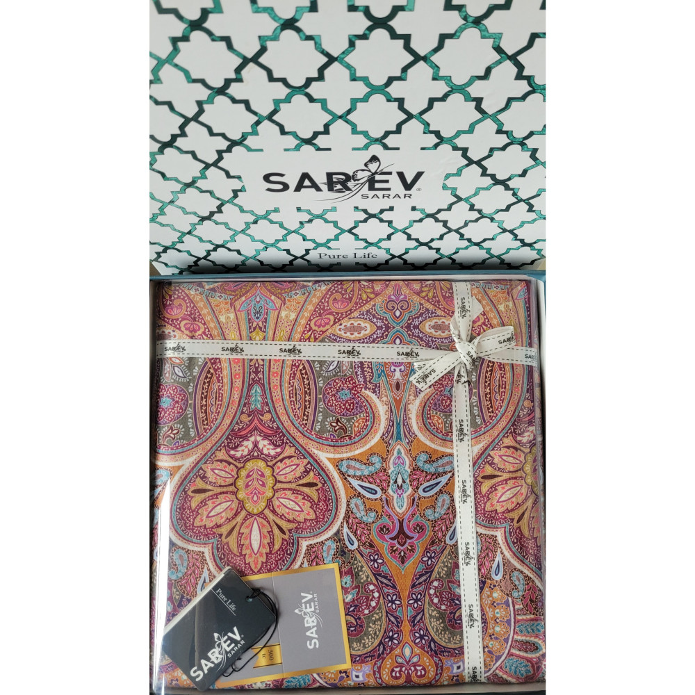 Комплект постельного белья от турецкого бренда Sarev. Он сшит из лёгкого, необычайно гладкого и шелковистого сатина высокой плотности плетения 300тс сотканного из 100% высококачественного турецкого хлопка. Ткань украшает принт, нанесённый с помощью реактивной цифровой печати.