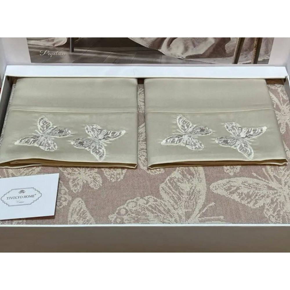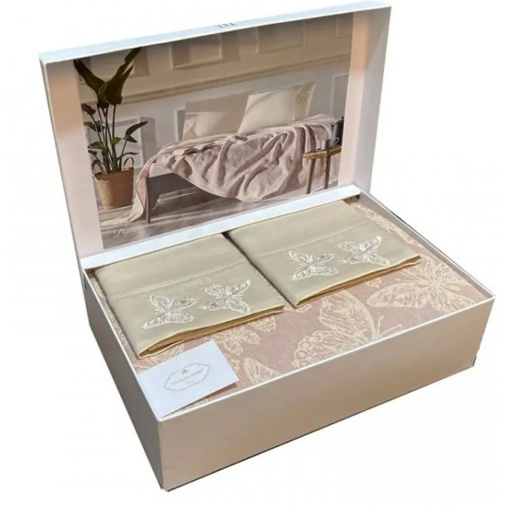 Постельное белье Tivolyo Home Papillon pembe с хлопковым покрывалом-пике евро
