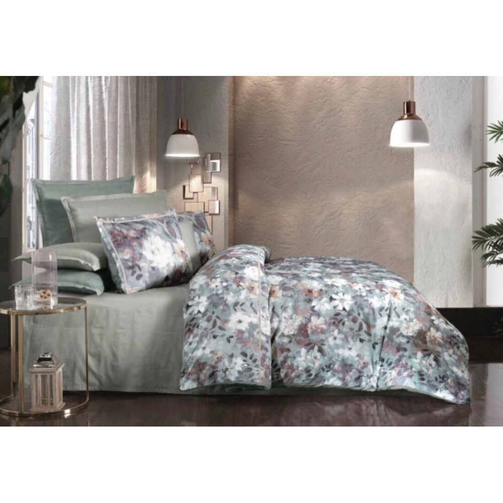 Комплект постільної білизни від турецького бренду Sarev. Він зшитий з легкого, надзвичайно гладкого і шовковистого сатину високої щільності плетіння 300тс зітканого зі 100% високоякісної турецької бавовни. Тканина прикрашає принт, нанесений за допомогою цифрового реактивного друку.