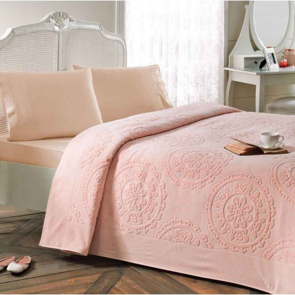 Матеріал: покривало-піке: м'який жакардовий велюр (100% бавовна); простирадла та наволочки: сатин люкс (100% бавовна). Жакардове покривало Tivolyo Home BAROC дуже затишне: рельєфний м'який жакардовий візерунок у вигляді завитків, на це покривало хочеться прилягти або просто провести рукою по хитромудрих вигинах візерунка. У набір входять дві наволочки із сатину розміром 50х70 см., прикрашені стильною тонкою стрічкою, а також простирадла. Постільні приналежності виробництва турецької марки Tivolyo Home відрізняються високою якістю та ексклюзивним дизайном. Переваги моделі: Не жарка – чудово підходить для використання в літній період. М'яке - дарує відчуття комфорту та ніжності. Легко гладиться. Відмінно пропускає повітря та забезпечує оптимальну терморегуляцію.