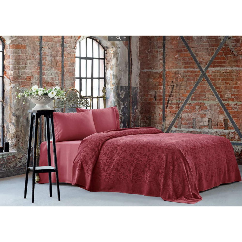 Матеріал: покривало-піке: м'який жакардовий велюр (100% бавовна); простирадла та наволочки: сатин люкс (100% бавовна). Жакардове покривало Tivolyo Home BAROC дуже затишне: рельєфний м'який жакардовий візерунок у вигляді завитків, на це покривало хочеться прилягти або просто провести рукою по хитромудрих вигинах візерунка. У набір входять дві наволочки із сатину розміром 50х70 см., прикрашені стильною тонкою стрічкою, а також простирадла. Постільні приналежності виробництва турецької марки Tivolyo Home відрізняються високою якістю та ексклюзивним дизайном. Переваги моделі: Не жарка – чудово підходить для використання в літній період. М'яке - дарує відчуття комфорту та ніжності. Легко гладиться. Відмінно пропускає повітря та забезпечує оптимальну терморегуляцію.