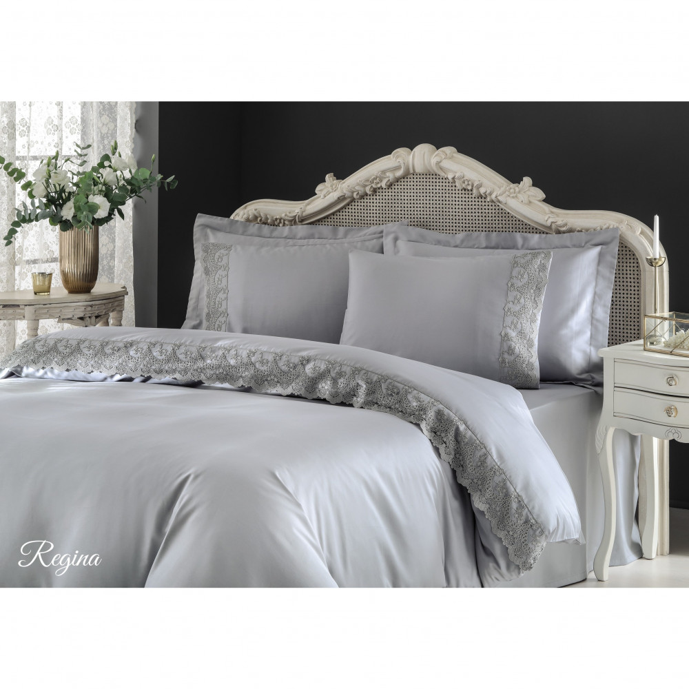 Постільна білизна Tivolyo Home Regina gri Делюкс сатин з гіпюром євро