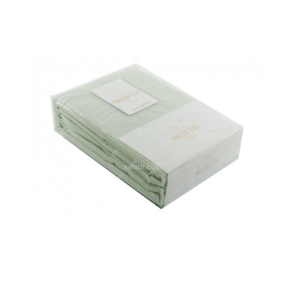 Простынь сатиновая Maison D'or green 240x260 + наволочки 2-50x70